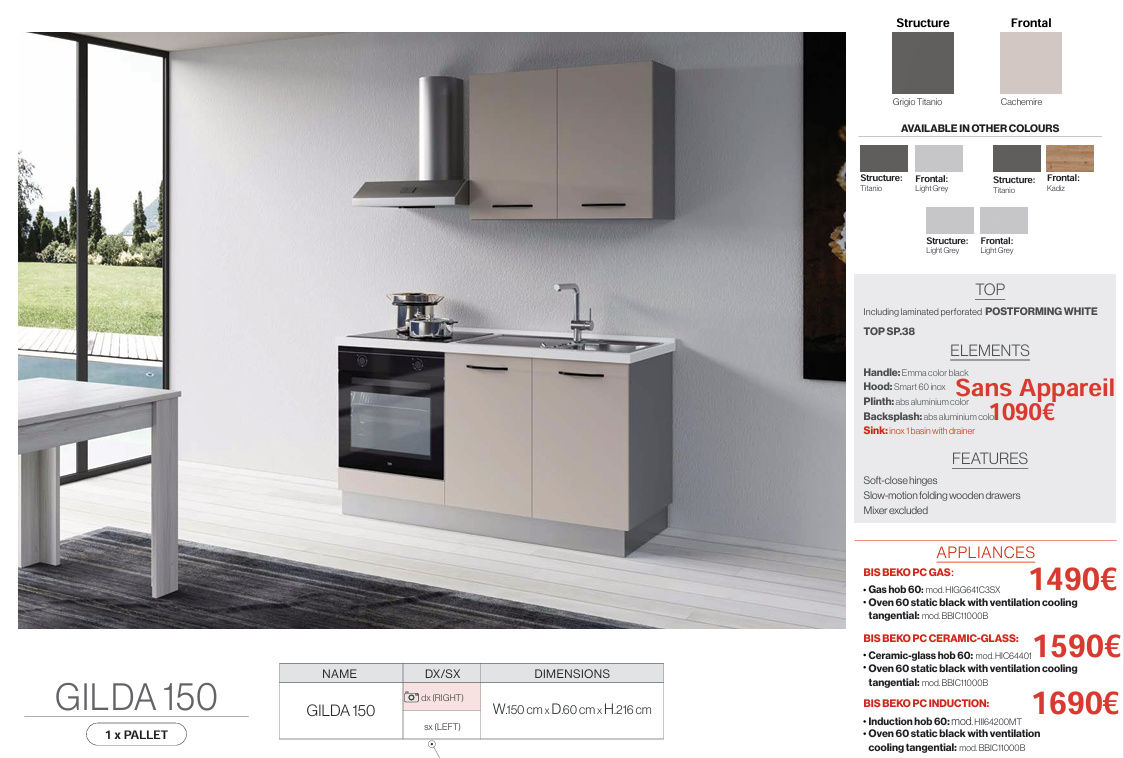 The LEFT or RIGHT direction of the kitchen is given by the POSITION OF THE SINK BOWL.