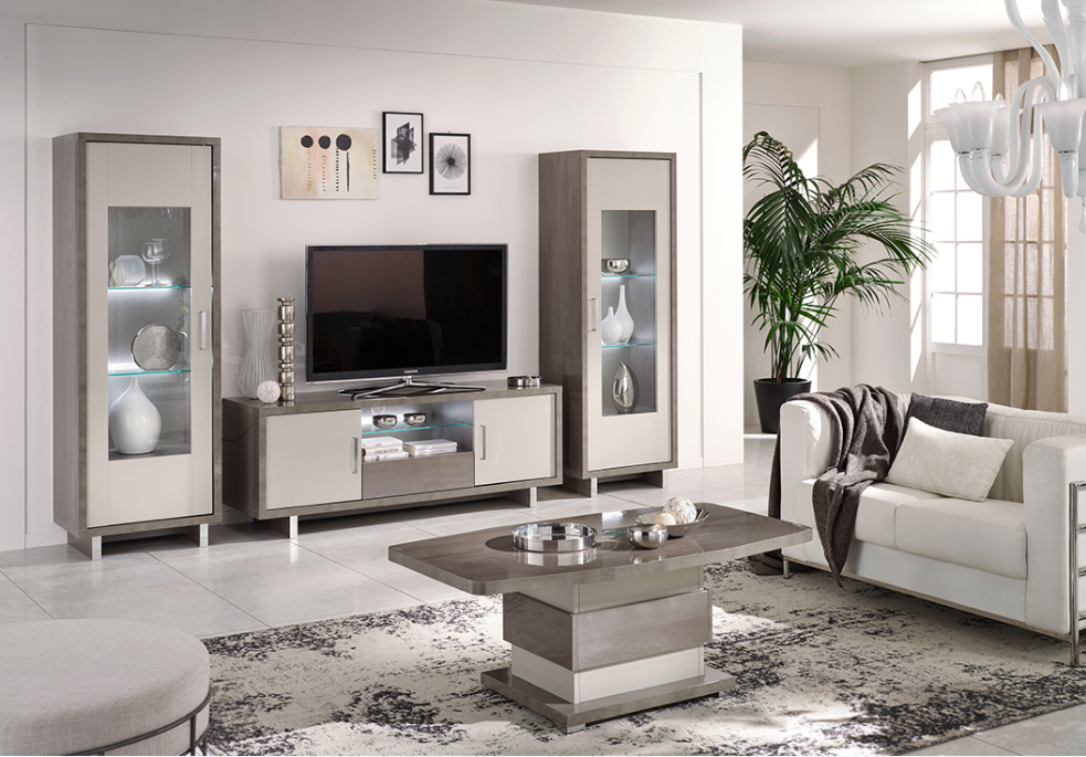 Séjour ROYAL Gris Complet, un ensemble design et fonctionnel qui allie modernité, rangements pratiques et finition soignée.