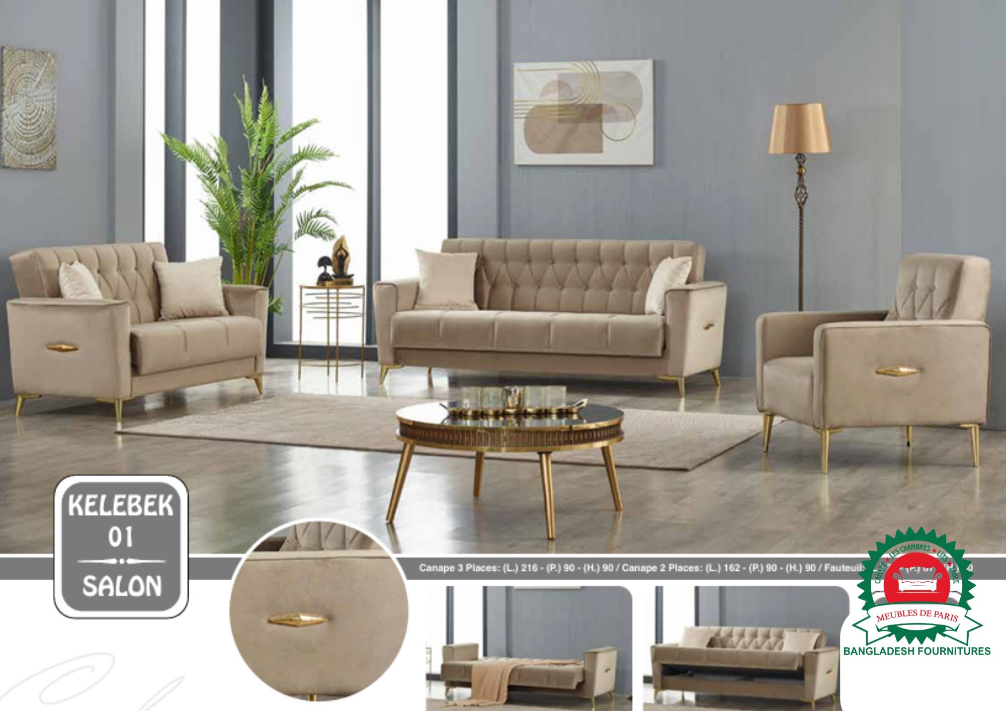 Découvrez le canapé KELEBEK   3+2+1 OU Angle   – l’un des modèles les plus demandés à Paris. Fabriqué en Turquie avec tissu de qualité, pieds en métal, multi-couleurs et tailles personnalisables.