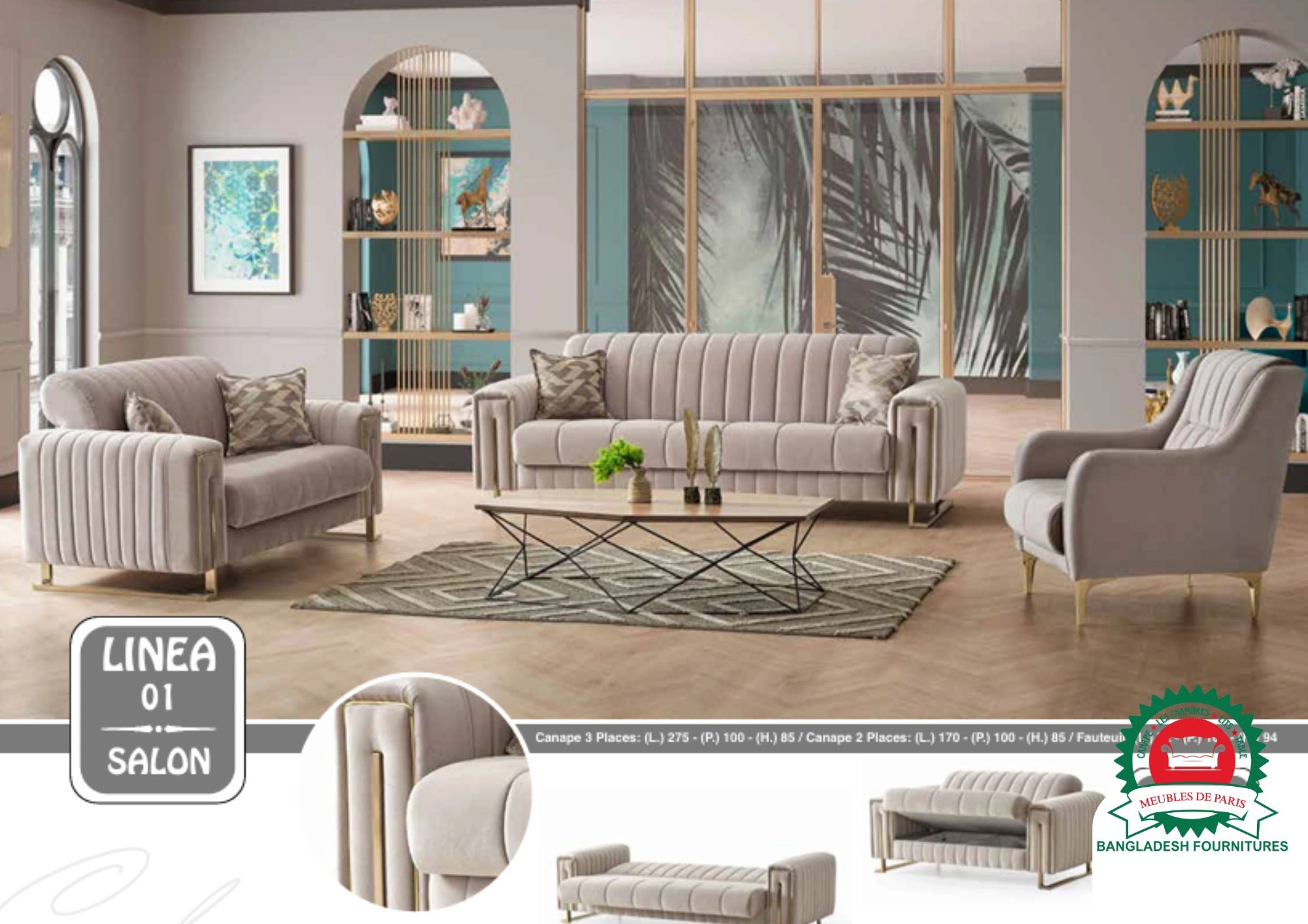 Découvrez le canapé LINEA  3+2+1 ou en angle – l’un des modèles les plus demandés à Paris. Fabriqué en Turquie avec tissu de qualité, pieds en métal, multi-couleurs et tailles personnalisables.
