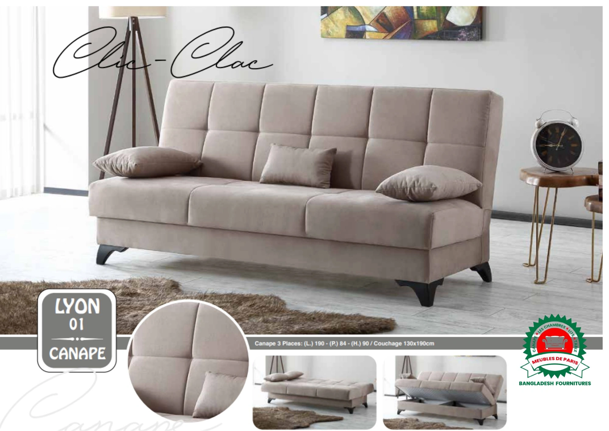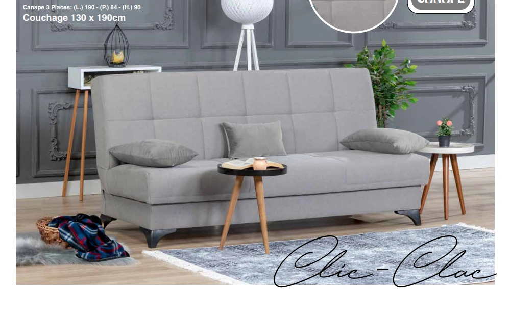 ✔ Configurations disponibles : 3 place = : (L.) 190 – (P.) 84 – (H.) 90 / Couchage 130x190cm