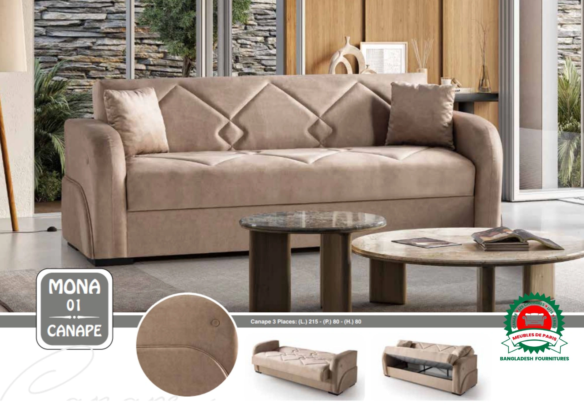 Découvrez le canapé MONA 3 Place – l’un des modèles les plus demandés à Paris. Fabriqué en Turquie avec tissu de qualité, pieds en métal, multi-couleurs et tailles personnalisables.