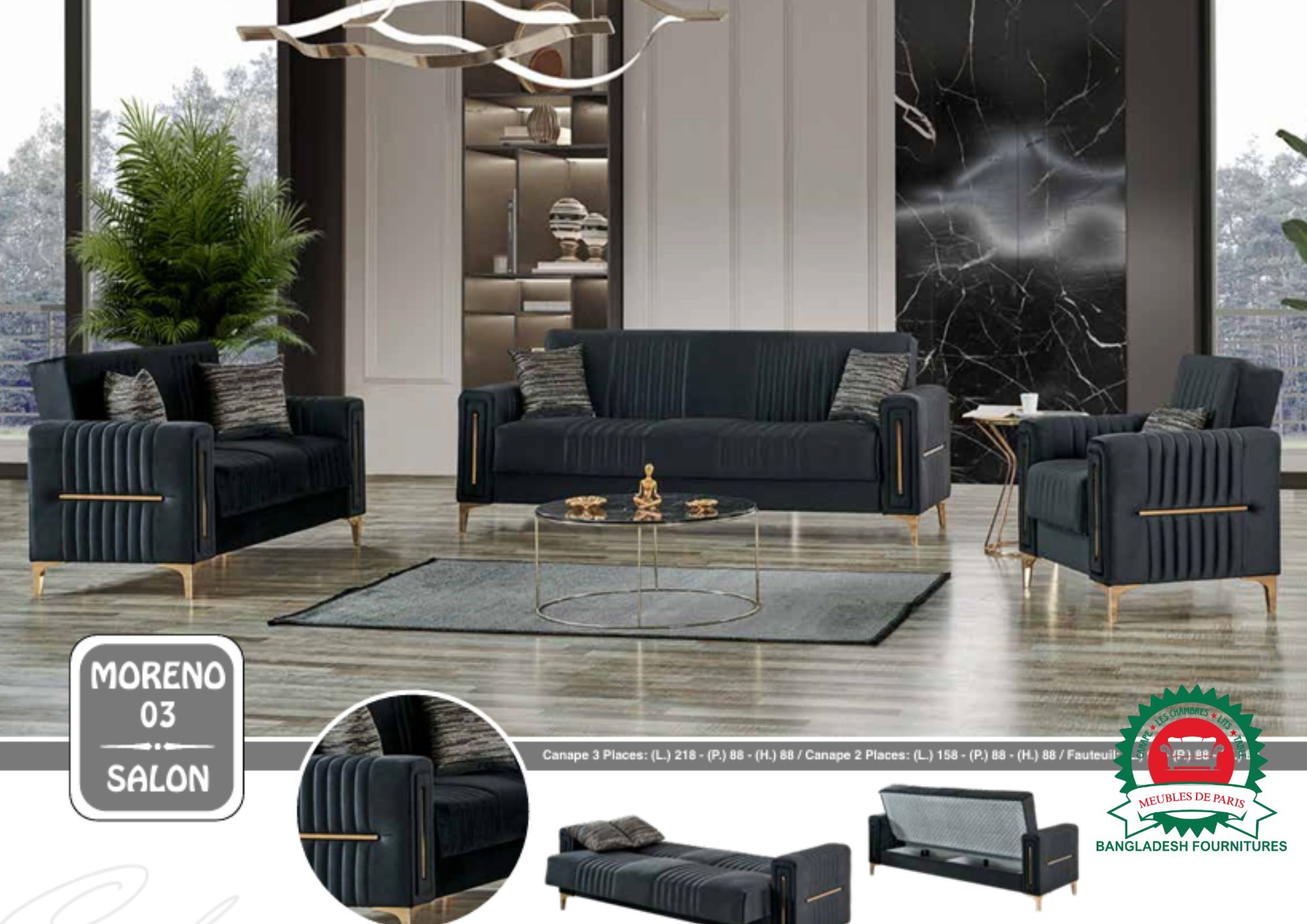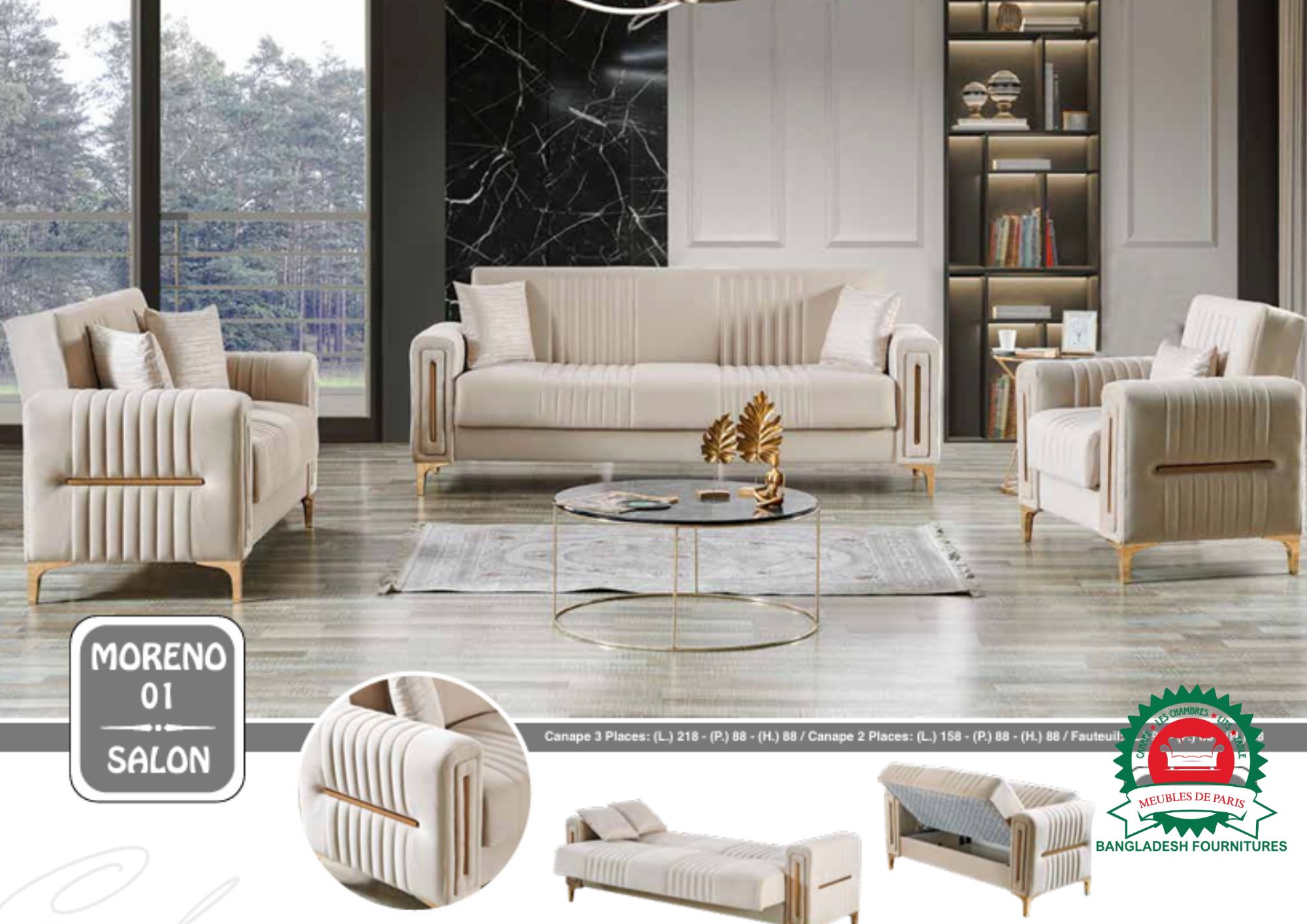 Découvrez le canapé MORENO 3+2+1 OU Angle – l’un des modèles les plus demandés à Paris. Fabriqué en Turquie avec tissu de qualité, pieds en métal, multi-couleurs et tailles personnalisables.