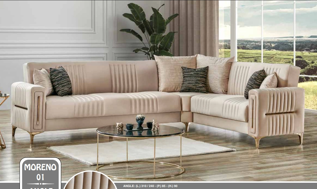 Découvrez le canapé MORENO 3+2+1 OU Angle – l’un des modèles les plus demandés à Paris. Fabriqué en Turquie avec tissu de qualité, pieds en métal, multi-couleurs et tailles personnalisables.