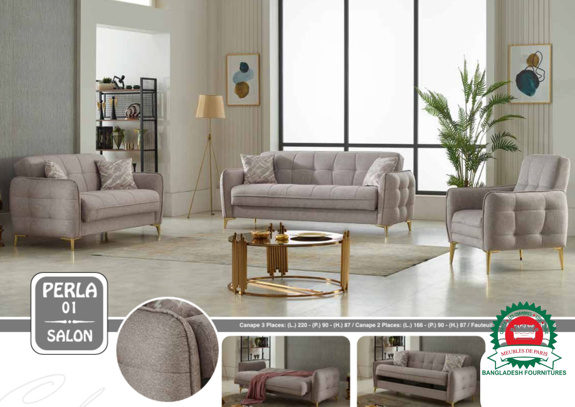 Découvrez le canapé PERLA   3+2+1 OU Angle   – l’un des modèles les plus demandés à Paris. Fabriqué en Turquie avec tissu de qualité, pieds en métal, multi-couleurs et tailles personnalisables.