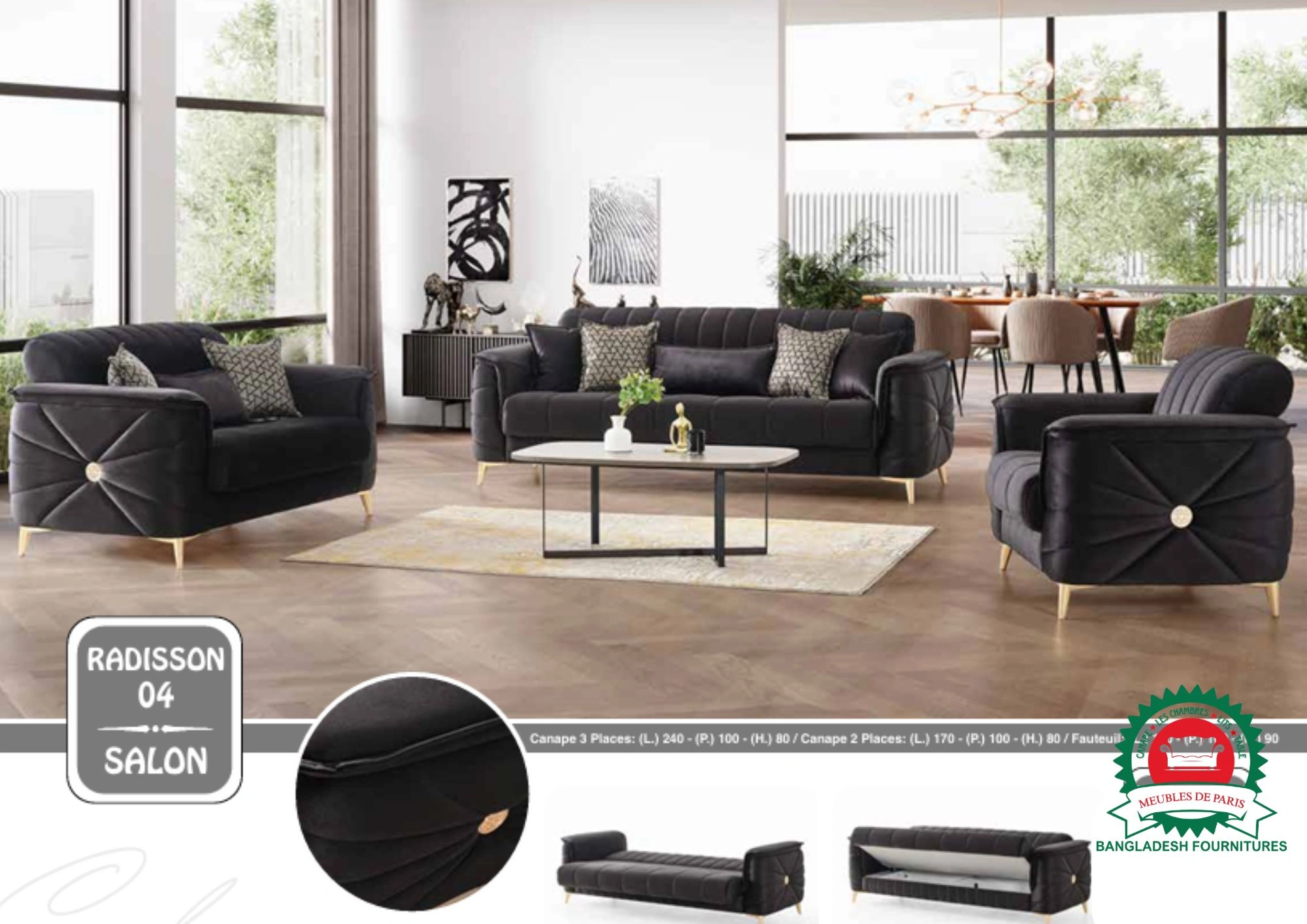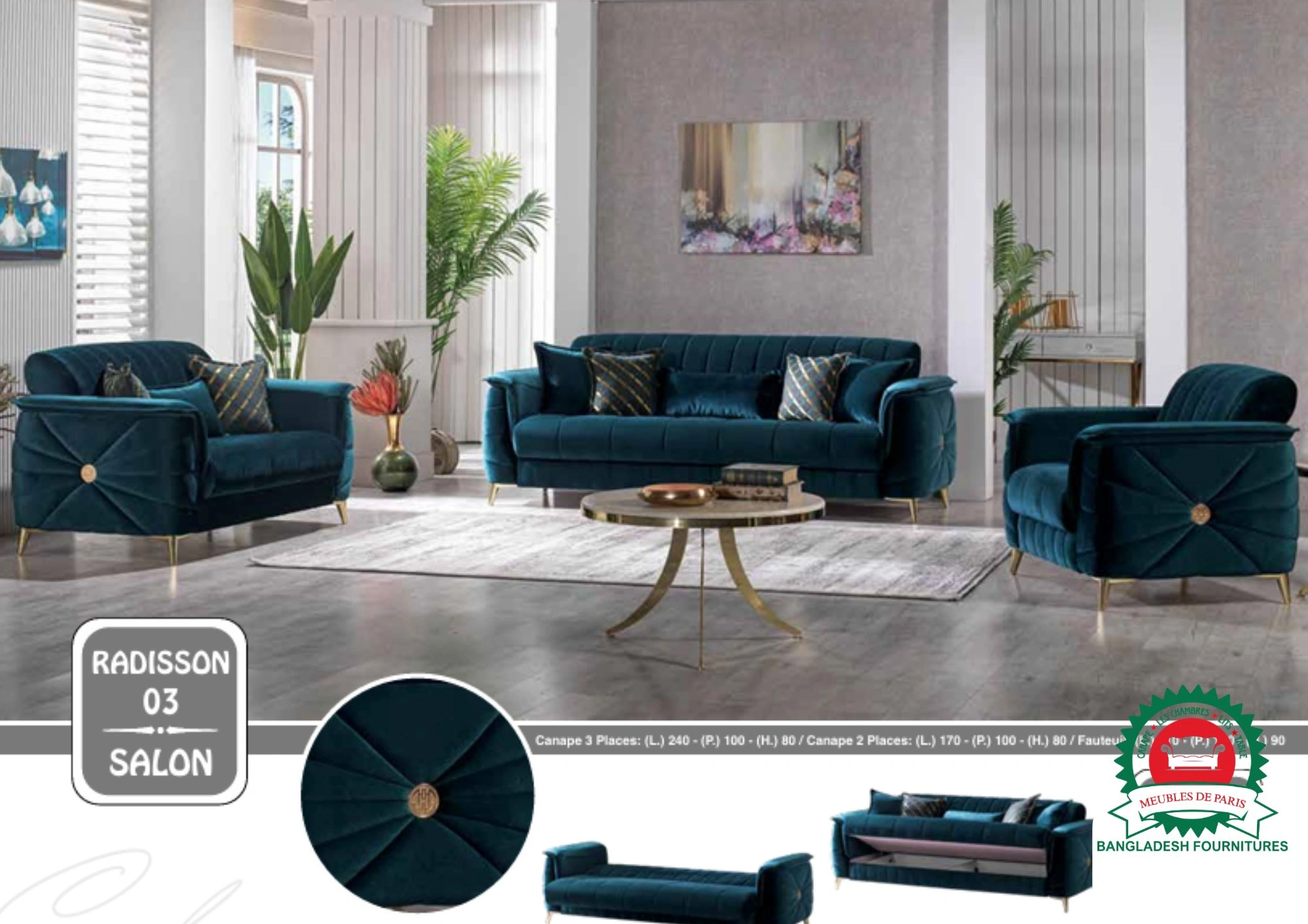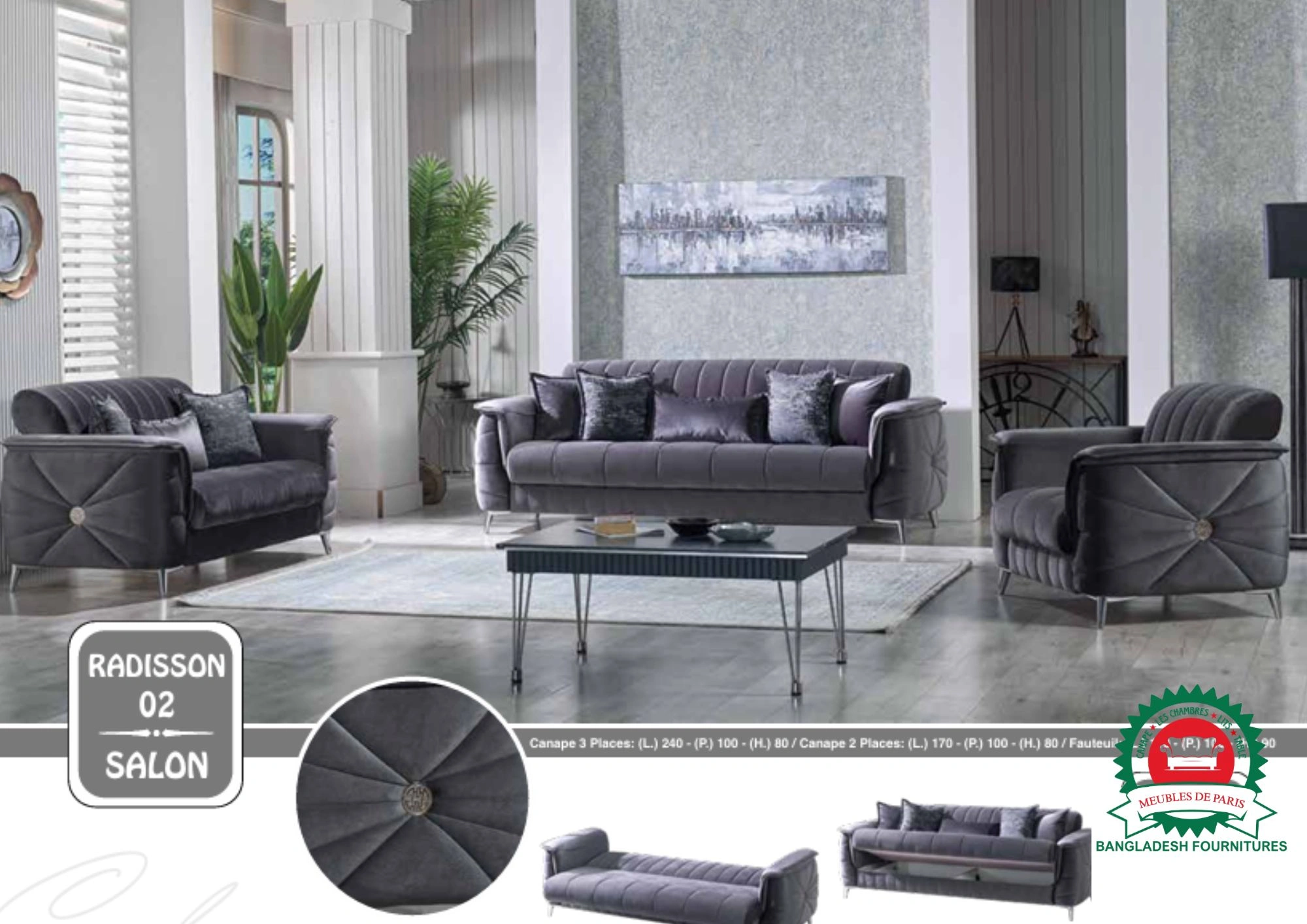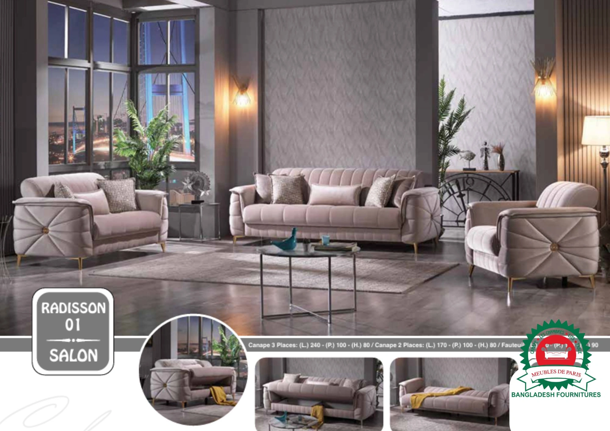 Découvrez le canapé RADISSON 3+2+1 ou en angle – l’un des modèles les plus demandés à Paris. Fabriqué en Turquie avec tissu de qualité, pieds en métal, multi-couleurs et tailles personnalisables.
