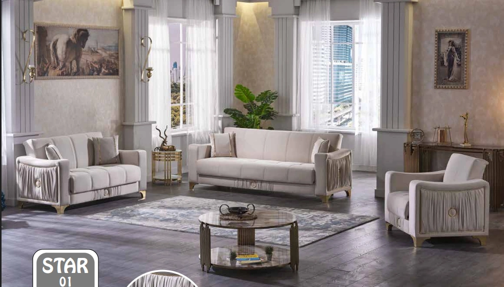Canapé STAR 3+2+1 Gris / Beige – Fabriqué en Turquie