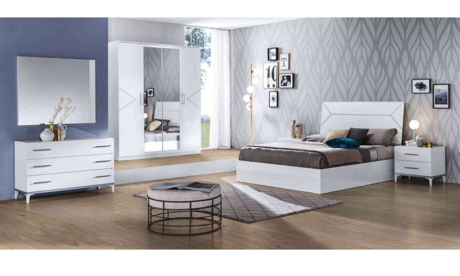 Chambre à Coucher Complète ELEGANCE Blanc Argent
