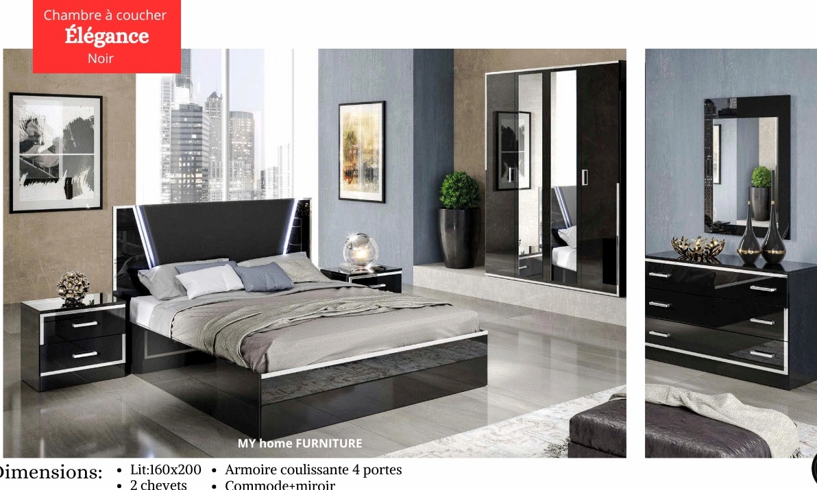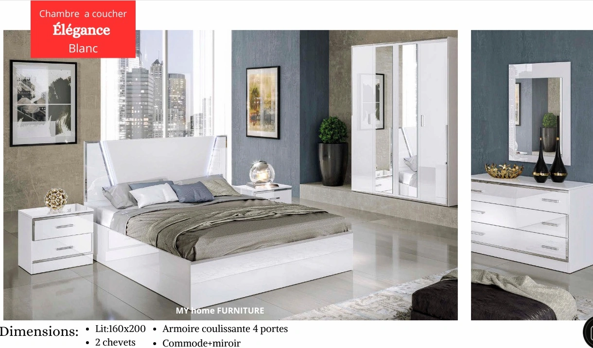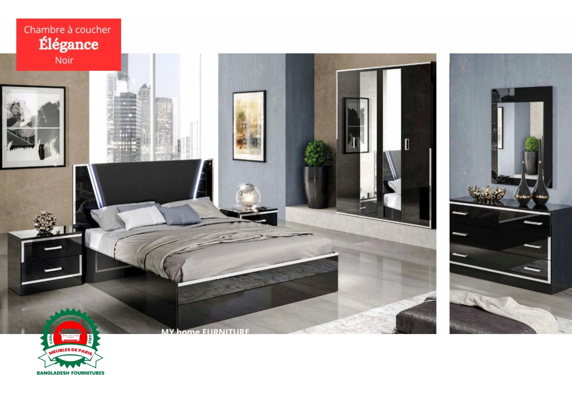 Transformez votre chambre avec cette chambre à coucher complète Elegance  6 pièces, alliant design modernequalité turque et prix imbattable. Disponible dans notre showroom Meubles De Paris à La Courneuve, ce pack est idéal pour un aménagement complet, élégant et fonctionnel de votre espace nuit.