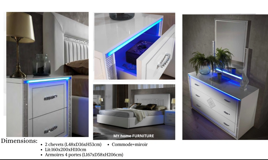 Transformez votre chambre avec cette chambre à coucher complèteGEMMA 6 pièces, alliant design moderne, qualité turque et prix imbattable. Disponible dans notre showroom Meubles De Paris à La Courneuve, ce pack est idéal pour un aménagement complet, élégant et fonctionnel de votre espace nuit.