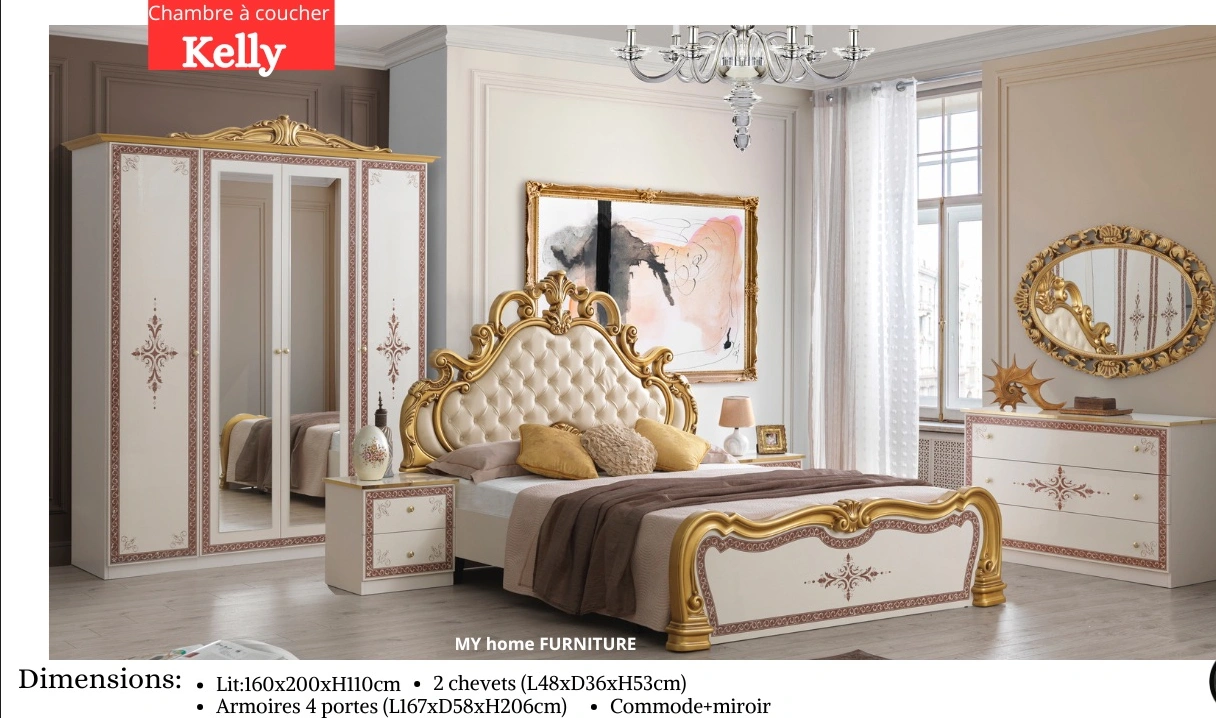 Chambre a Coucher GRANCE KELLY 160 BEIGE Sans Sommiers