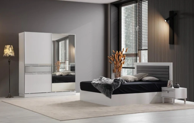Illuminez votre chambre avec notre modèle complet LE MANS composée d’un cadre de lit, d’une armoire, de deux chevets et d’une commode (avec miroir). Une chambre chaleureuse qui vous apportera confort et bien-être.