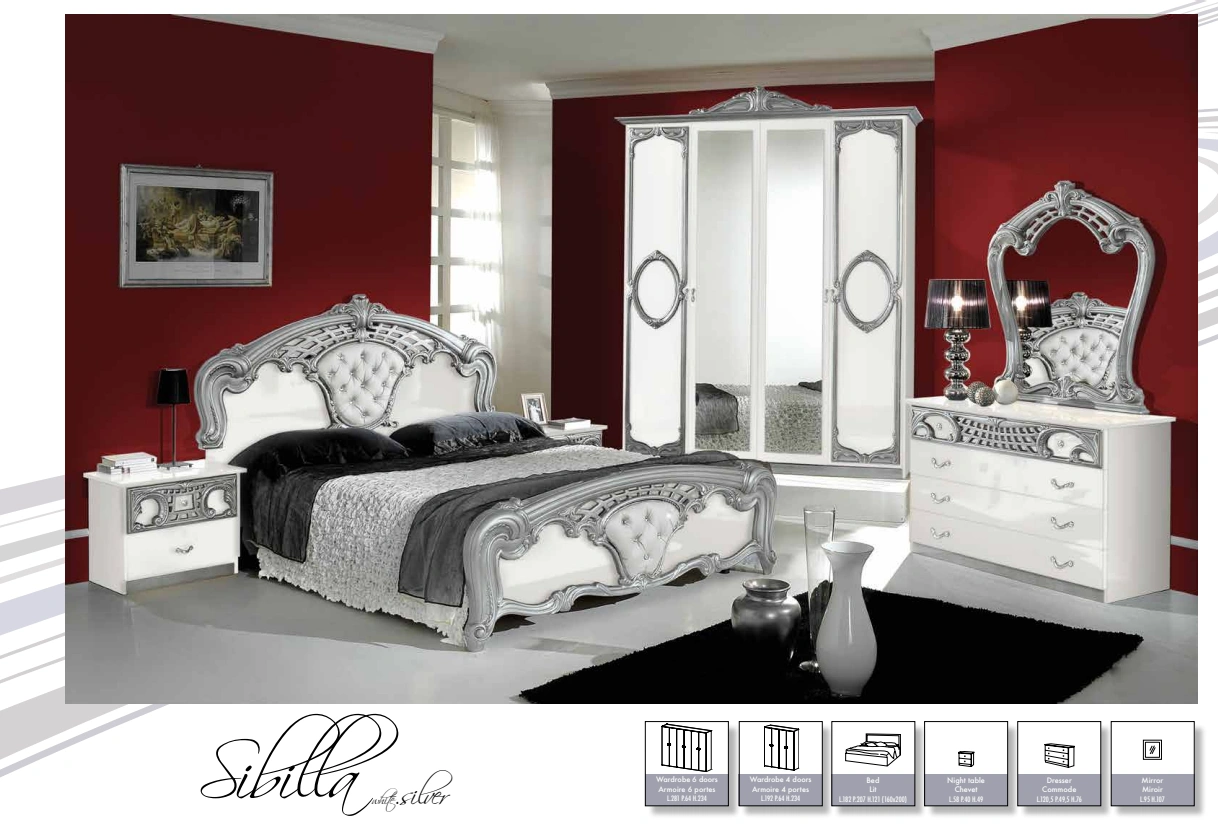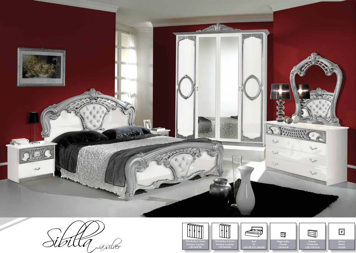 Chambre a Coucher SIBILLA 160 Blanc / Noir   Sans Sommiers