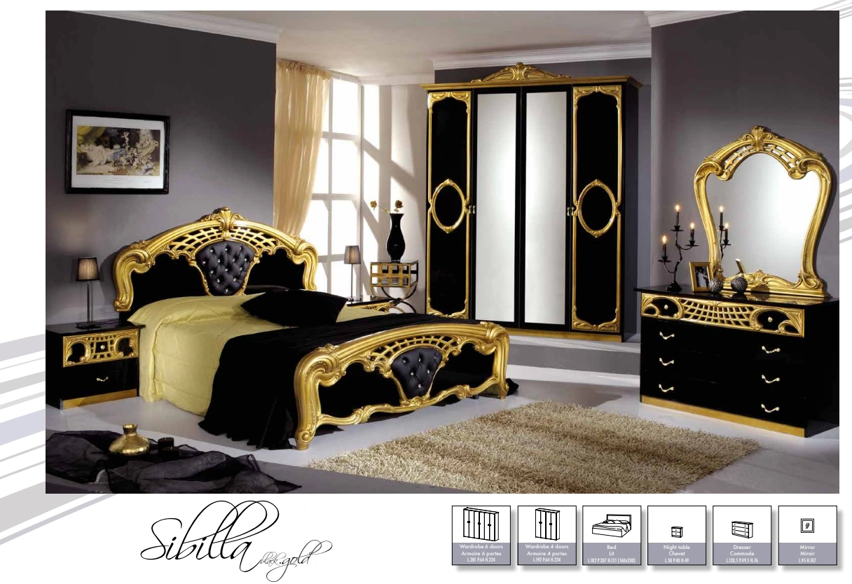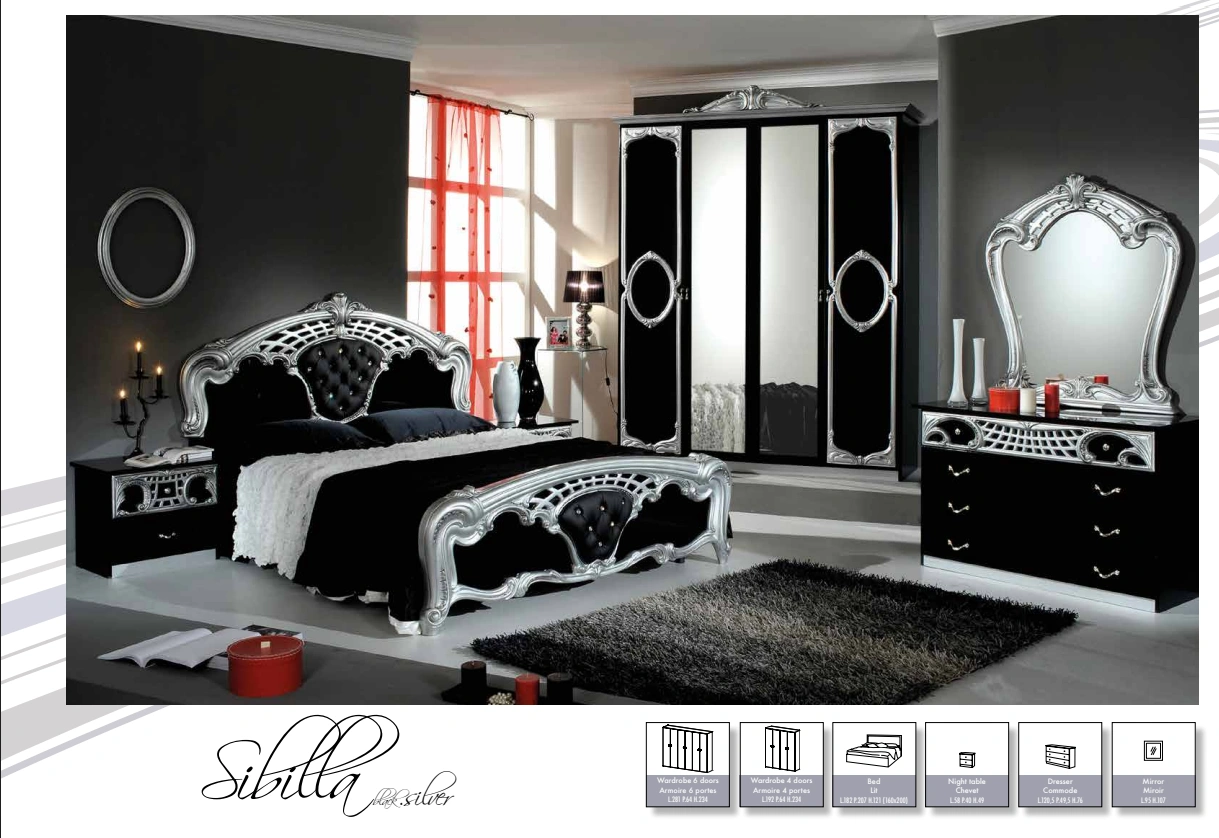 Chambre a Coucher SIBILLA 160 Noir / Blanc   Sans Sommiers