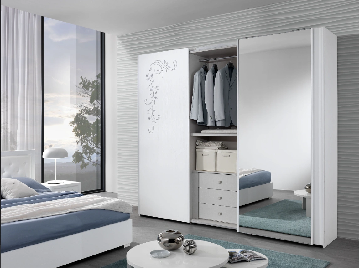 ✔ Armoire Coulissante (portes glissantes, penderie + étagères)
