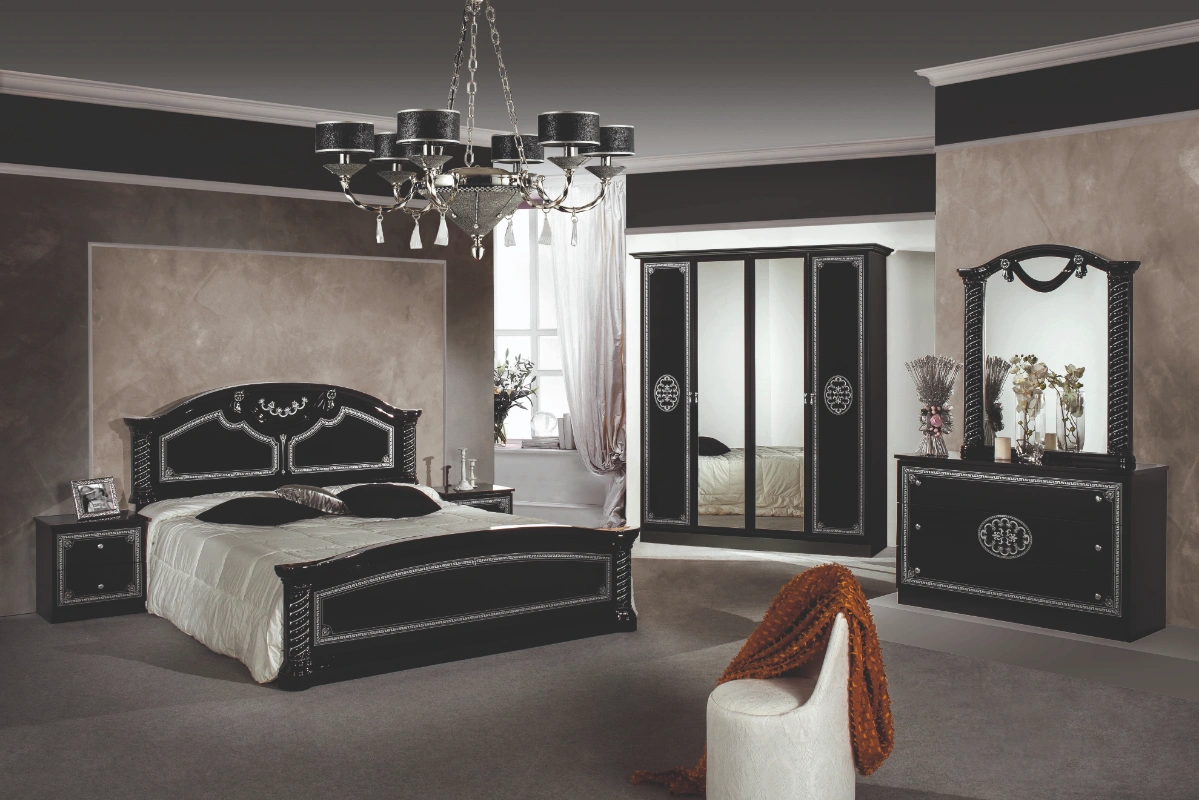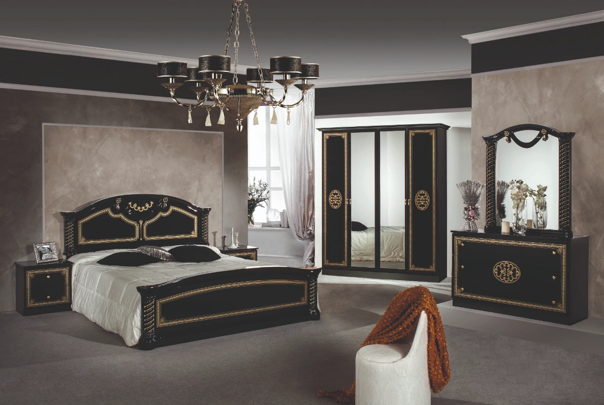 Chambre a Coucher VERA  Beige/Noir/Walnut/Blanc 160    Sans Sommiers