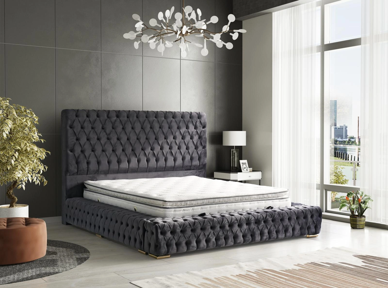 Lit Coffre CASTELLO Gris 160×200 Sans Chevet et Matelas