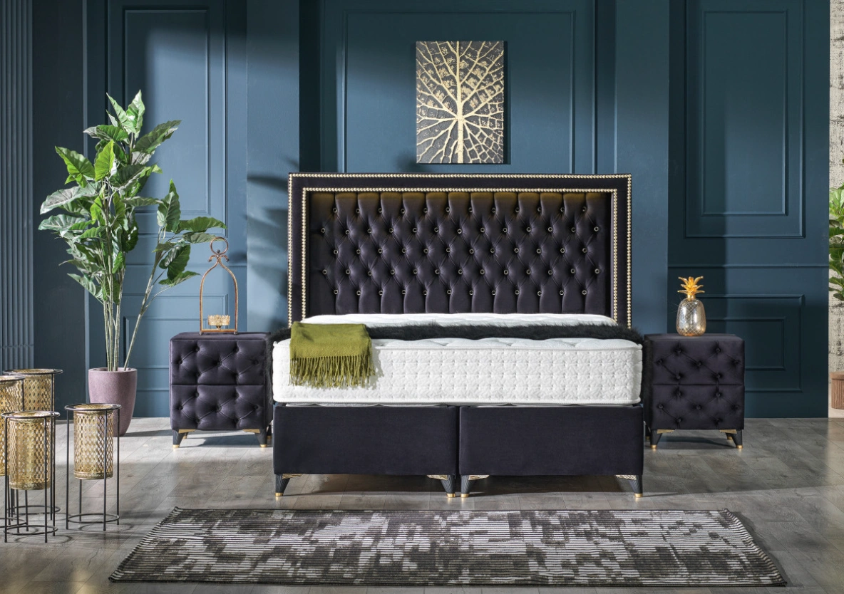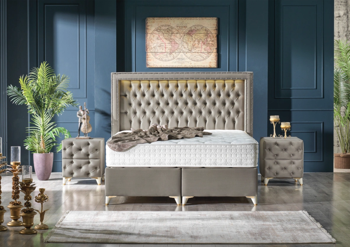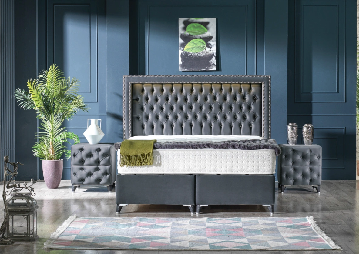 Lit Coffre Manchester Gris / Beige / Noir 160×200 / 180/ 140×190