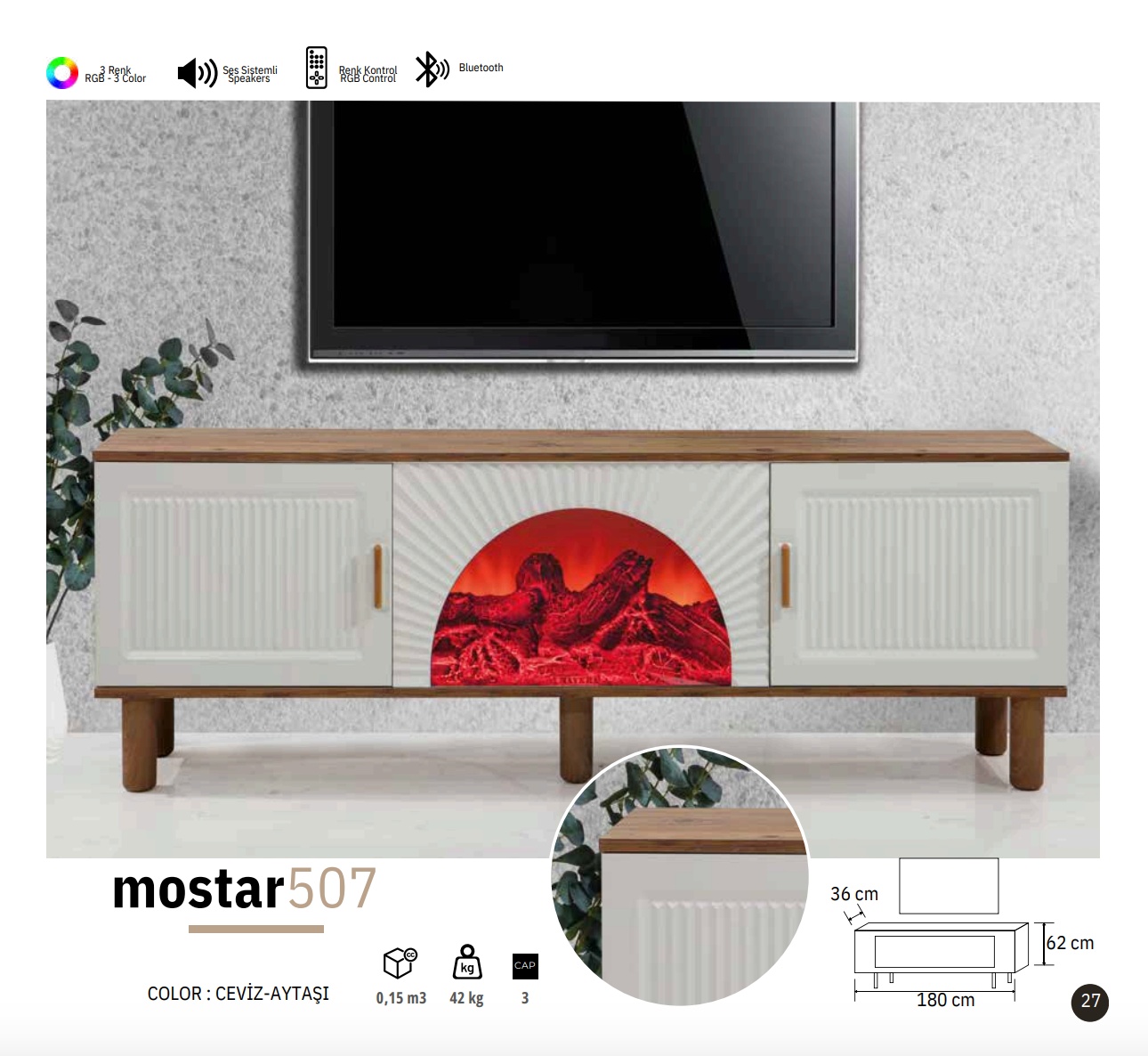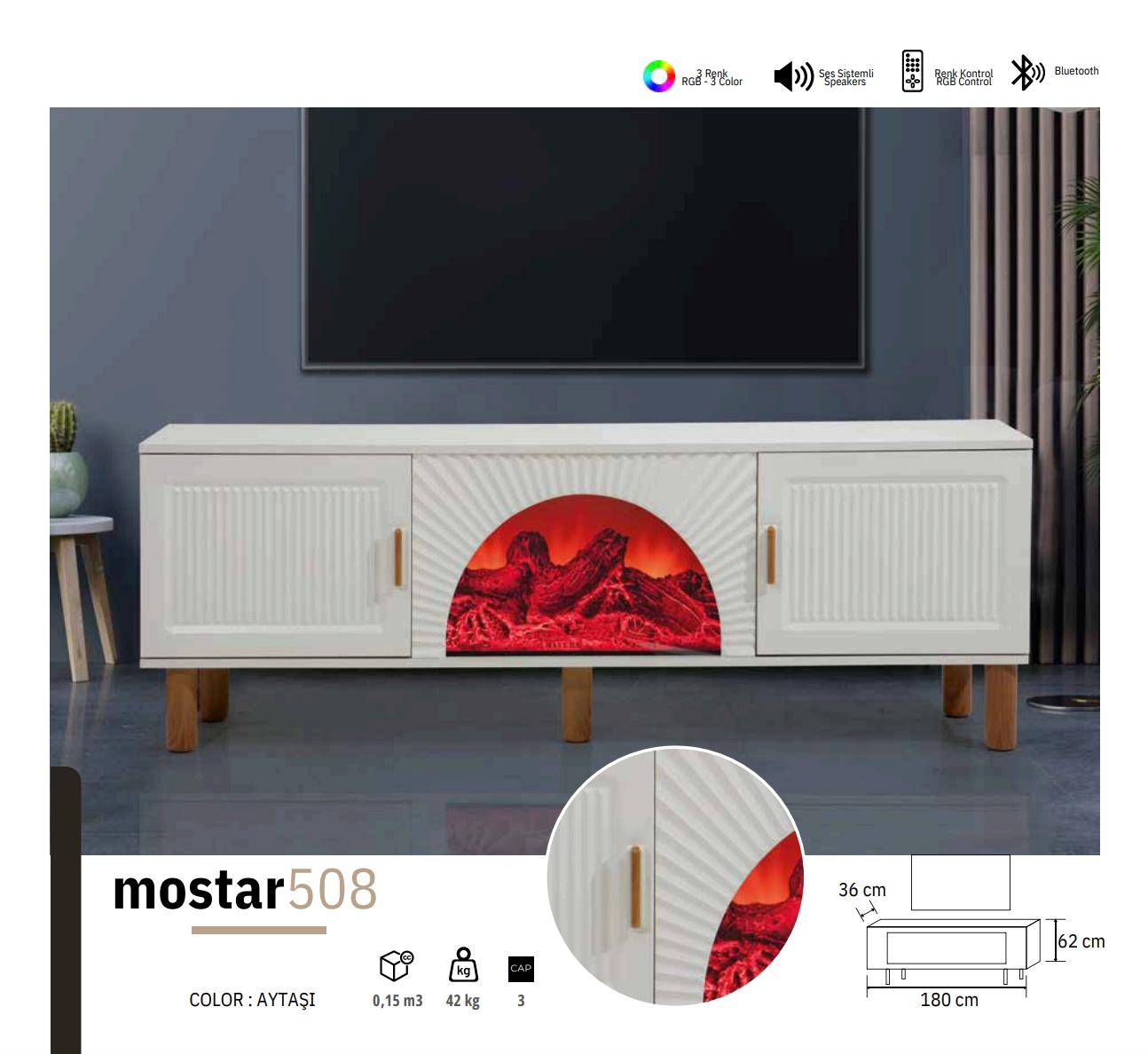 Meuble TV MOSTAR avec Cheminée – 180 cm