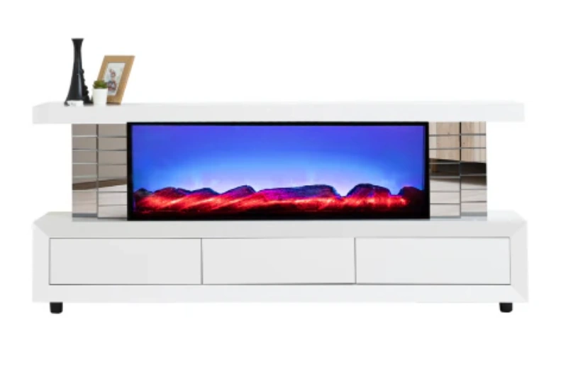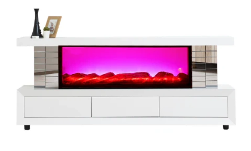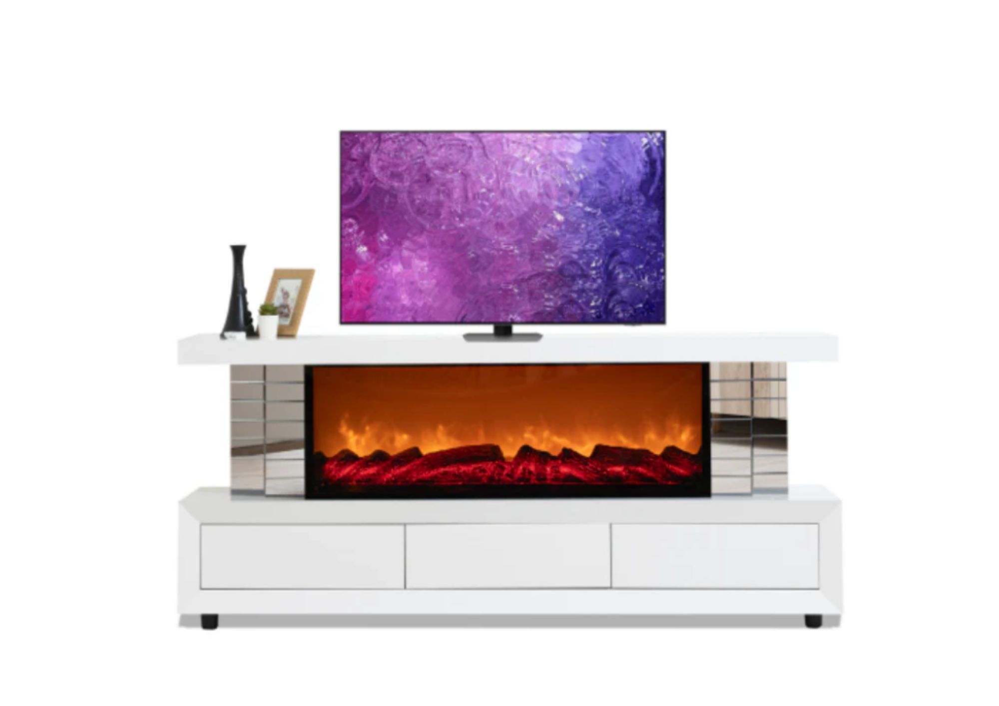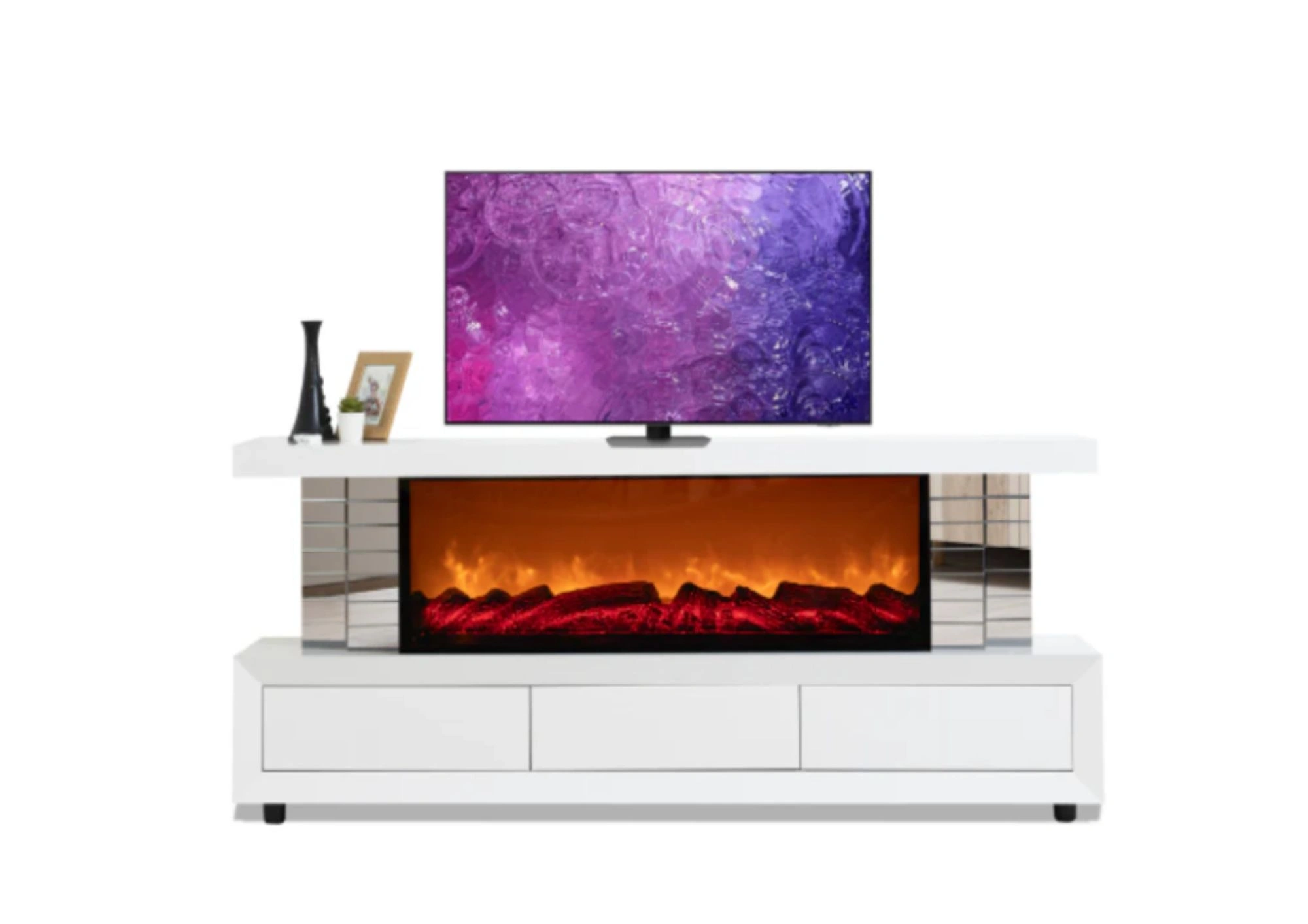 Apportez modernité et confort à votre salon avec le meuble télé Bergama. Ce meuble blanc laqué est équipé d’une enceinte Bluetooth et d’une cheminée LED réglable via télécommande, pour une ambiance chaleureuse et personnalisée. Son design épuré et sa fonctionnalité en font un choix parfait pour un intérieur chic et technologique.