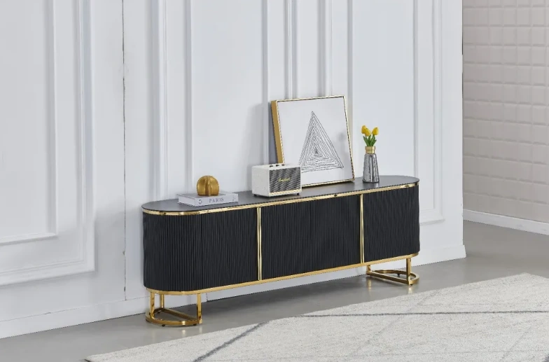 Meuble TV ESMEE Doré et Céramique Noire – Design Luxe & Moderne | Modèle TV21RN