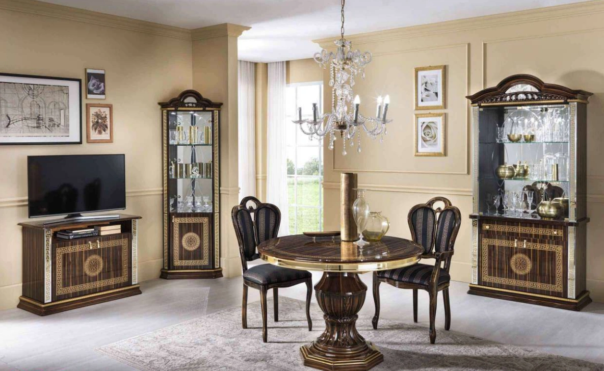 Vitrine New VENUS Noir Dore 4/ 2 /1 Portes complete , un ensemble design et fonctionnel qui allie modernité, rangements pratiques et finition soignée.
