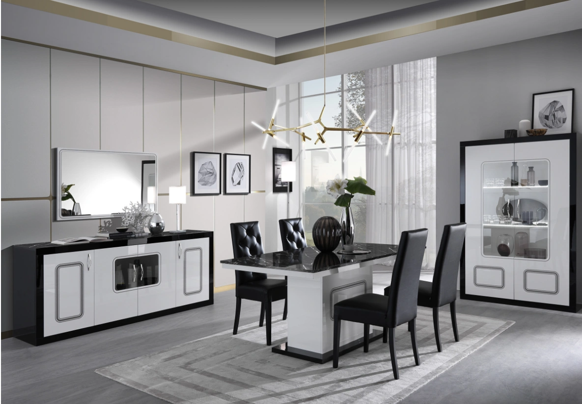 • 2 Ports vitrine  avec étagères vitrées avec LED inclu pour mettre en valeur vos objets décoratifs.